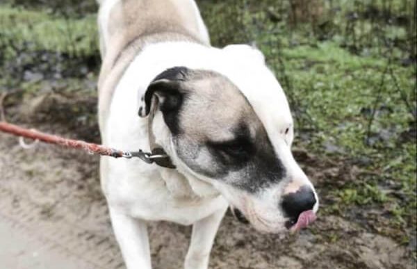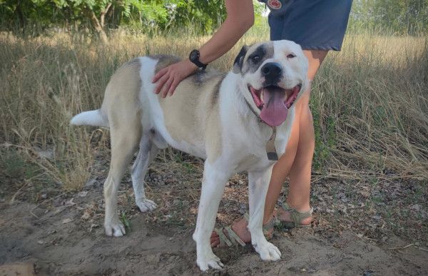 "Alfonz kam im April 2023 aufgrund schlechter Haltung durch eine Beschlagnahmung ins Tierheim. Er wurde stark abgemagert und von einer Kette befreit, gemeinsam mit einem Gefährten.