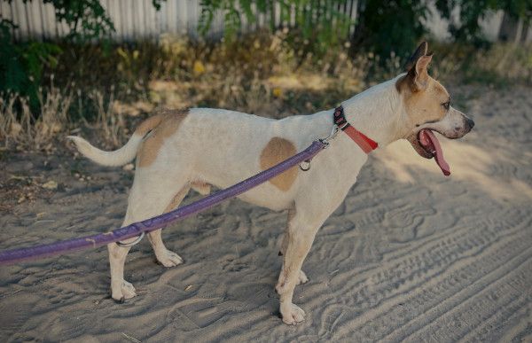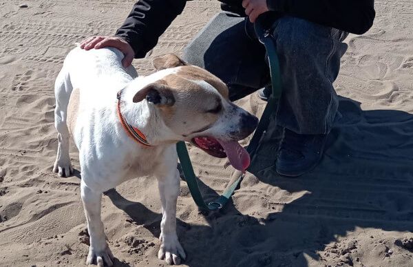 Auch der Bewegungsbedarf muss täglich gedeckt werden. Er hofft auf regelmäßige Spaziergänge und spielerische Aktivitäten. Er läuft gut an der Leine."