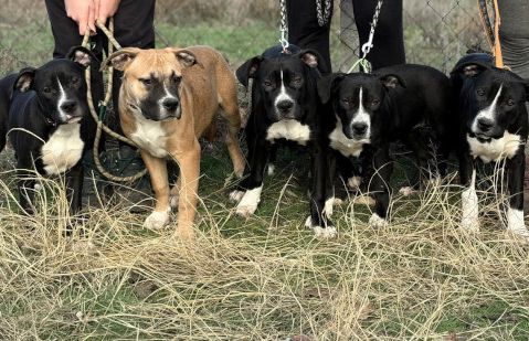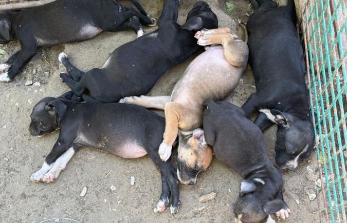 Am 25.5.2025 kam Mama Emma, zusammen mit einem anderen, namenlosen Staffrüden, welcher es leider nicht geschafft hat, aus einem Brennpunktviertel, als Beschlagnahmung ins Tierheim. Man kann sich nur schwer vorstellen, wie die Hunde dort leben mussten und wie mit ihnen umgegangen wurde. Solange das Verfahren läuft, darf «nichts an den Hunden gemacht werden», sprich keine Kastration etc. Zu diesem Zeitpunkt war Emma schon schwanger, wir vermuten von dem inzwischen verstorbenen Staffrüden und gebar am 8.7.2025 9 Welpen, Nikita, Vipin, Nila, Vicky, Rahul, Rari, Divya, Rena und Prince. Nun wurde die Hundefamilie dem Tierheim zugesprochen und wir können sie in die Vermittlung nehmen. Ihnen ist ein trauriges Leben erspart geblieben und sie halten schon Ausschau nach ihren neuen Menschen. Wir drücken ihnen fest die Daumen, dass sie bald ein verantwortungsvolles Zuhause finden.
