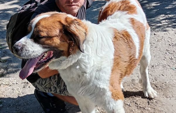 Am 1.9.2025 schreibt eine freiwillige, ungarische Helferin: "Ruslans Mentor erzählte, dass sie bereits zum dritten Mal zusammen spazieren gegangen sind. So konnte sich das Vertrauen zwischen Hund und Mentor entwickeln. Während des Spaziergangs verlangte er nach Streicheleinheiten und Zuwendung. Sobald sie anhielten, legte Ruslan sofort seinen Kopf auf die Schulter seines Mentors. Er war sehr dankbar und liebevoll. Er ist ein äusserst friedlicher und gutmütiger Hund. An der Leine ist er manchmal noch unsicher, aber er wird immer geschickter."