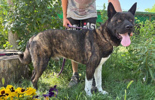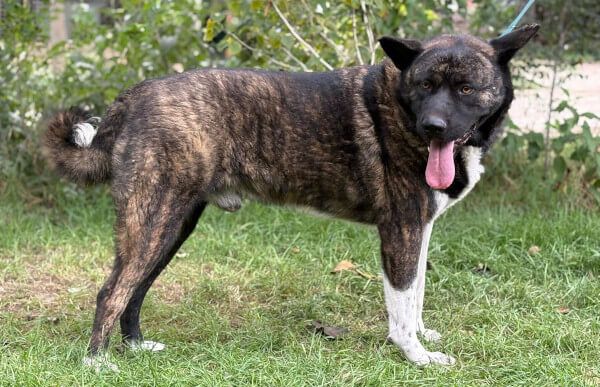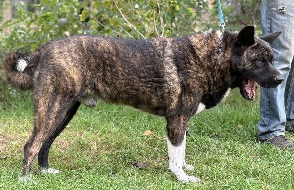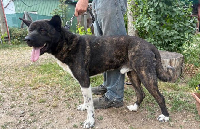 Zum Glück hat Vidar seine Vertrauen in die Menschen nicht verloren, was zeigt, was für einen tollen Charakter dieser Hund hat. Frauen schliesst er sich gleich an, bei Männer braucht er etwas Zeit, taut aber schnell auf, wenn er merkt, dass man es gut mit ihm meint. Vidar ist ein freundlicher, lieber, kräftiger, agiler und netter Kerl, der sich zum Glück recht gut in seine neue Lebenssituation einfügte. Er ist happy, wenn man ihm etwas Zeit und Aufmerksamkeit schenkt und freut sich über jede Streicheleinheit und Zuneigung, da hat er viel Nachholbedarf. Vidar ist im besten Alter und möchte geistig wie körperlich gefordert und gefördert werden. Zu Anfang gilt aber auch bei ihm: das Hundeeinmaleins lernen und festigen, das an der Leine laufen klappt schon ganz gut, an den Feinheiten darf noch weiter gearbeitet werden. Vidar ist ein schlauer Bursche, Akitas gelten als intelligente und unabhängige Hunde, welche aber bei falscher Führung auf stur schalten können und es wird bestimmt viel Spass machen, mit ihm zu arbeiten und zu trainieren. Er wäre sicher auch ein wunderbarer Begleiter beim Joggen, Fahrradfahren, Wandern oder anderen sportlichen Aktivitäten, Hauptsache Mensch und Hund haben Spass und eine gute Zeit zusammen. Mit seinen Artgenossen versteht sich Vidar gut lebt aber aktuell (12.5.2025) noch alleine im Kennel und es wird nach einem geeigneten WG Partner oder Partnerin Ausschau gehalten.