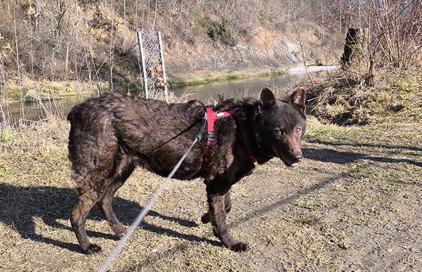 Update 28.03.2026: "Jetzt bin ich schon zwei Monate hier in der Schweiz. In dieser Zeit bin ich so richtig aufgeblüht. Ich geniesse die Spaziergänge, die frische Luft, die Ruhe, mein Bettchen und das leckere Fressen. An der Leine laufe ich profimässig und darf sogar schon ab und zu ohne Leine laufen, der Rückruf klappt schon ganz gut.