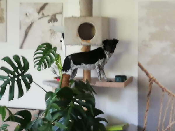 Nein, kleine Maus, du musst kein perfekter Hund werden. Du bist genau gut so, wie du bist, mit all deinen Eckchen und Käntchen. Dass wir dank dir jeden Tag wieder etwas über Nachsicht, Geduld und Vertrauen lernen, bereichert unseren Alltag sehr. Mit deinen Streichen bringst du uns immer wieder zum Lachen, wie zum Beispiel, als du den Katzenbaum elegant erklettert hast, um unseren beiden Katzendamen beim sauber aufessen zu helfen
