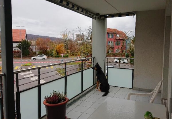 Ich setzte mich etwas entfernt von einem Kreisel hin, er sprang auf die kleine Mauer neben mich und beobachtete den Verkehr. Einige Tage später etwas näher... Die Neugierde half. Das erste Mal bei der Kartonabfuhr wollte er in die Büsche. Ich ging etwas beiseite und liess ihn zuschauen. Beim nächsten Mal war er so neugierig, dass er näher wollte und die Sache genau beobachtete. Heute meldet er, dass die Abfuhr kommt, will auf den Balkon, um zu sehen was passiert. Als wir das erste Mal am Fussballplatz vorbeigingen, wollte er in einen Garten hinter die Hecke. Ich ging einfach weiter, als ob nichts wäre und er ging auf der Aussenseite. Auf der anderen Seite waren wir weiter weg. Er setzte sich und schaute zu, wie sie riefen und hinter dem Ball herrannten. Corellis Angst auf den Balkon zu gehen. Er ging ca. 1 Monat lang nur bis an die Balkontüre.