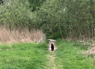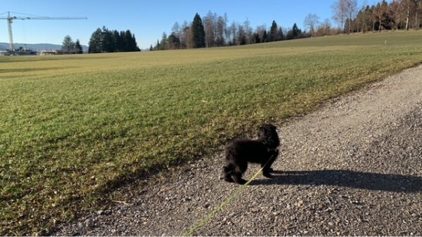 Zwischenzeitlich geht er brav an der Leine und lässt sich gut abrufen. Herkommen, langsam gehen, warten und Sitz passt schon ganz gut, ausser wenn er durch fremde Leute oder ungewohnte Geräusche abgelenkt ist. Man kann ihn auch problemlos von der Leine lassen, vor allem dann wenn man weiss, dass man keine Menschenansammlungen begegnet oder auf gut überschaubaren offenen Feldern.