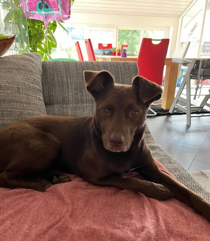 Mindy ist nach wie vor eine Super Hündin, Mindy versteht sich sehr gut mit unserer Tochter sie spielen Zusammen und sie ist sehr vorsichtig. Mindy begleitet mich auch immer zur Arbeitet Dort gibt es noch 2 weitere Hunde mit denen sie sich auch gut versteht. Sie ist auch sehr beliebt, die Leute kommen zu uns nur um sie zu streicheln oder zu kuscheln und zaubert den Leuten ein Lächeln ins Gesicht was sie auch sehr geniesst und liebt.
