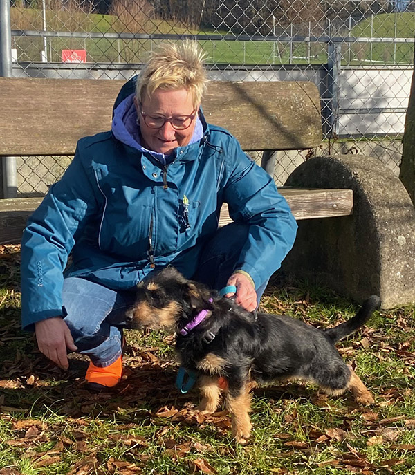 Einfach nur happy - Nilla ist eine kleine süsse freche Prinzessin, sie hat sich sofort an uns gewöhnt, ist stubenrein, verspielt und verschmust und hat sich zu Hause gut eingelebt. Als künftige Stadthündin macht sie sich sehr gut und ist mutig unterwegs. Tramfahren ist bald auf dem Plan.